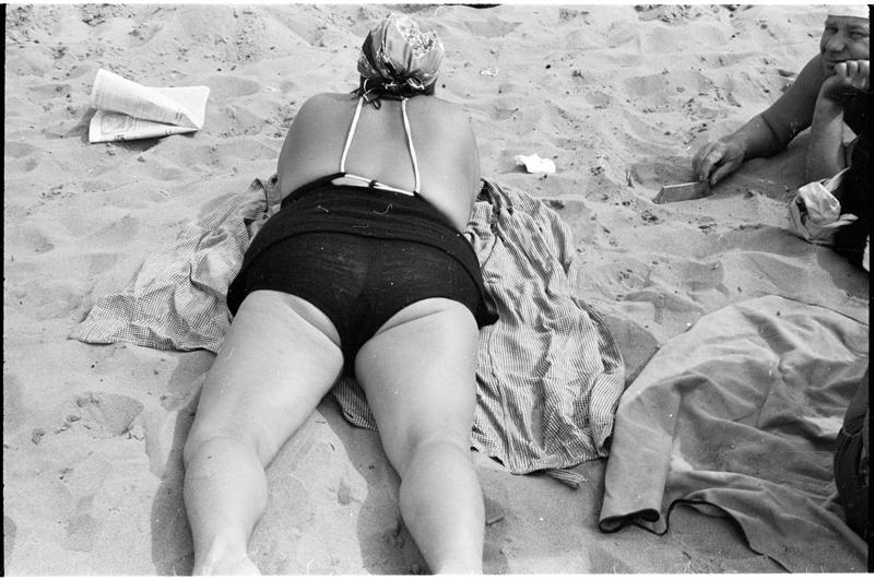 [Woman relaxing on Coney Island beach.]
