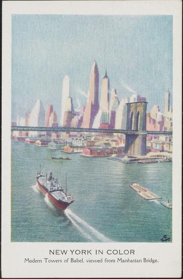 [Brooklyn Bridge Tower and Lower Manhattan.]