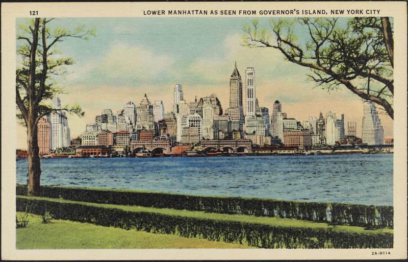 New York City views. Lower Manhattan from Governor's Island, house on left.