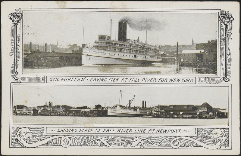 Str. Puritan leaving pier at Fall River for New York. Landing place of Fall River Line at Newport.