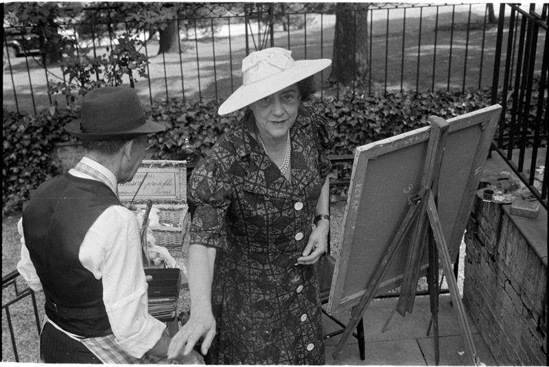 [People painting outside, paintings by Reginald Marsh, and group portrait of unidentified people.]