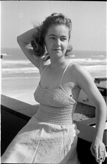 [Felicia Marsh on roof deck of Fred Dana Marsh's "Battleship" house in Ormond Beach, Florida.]