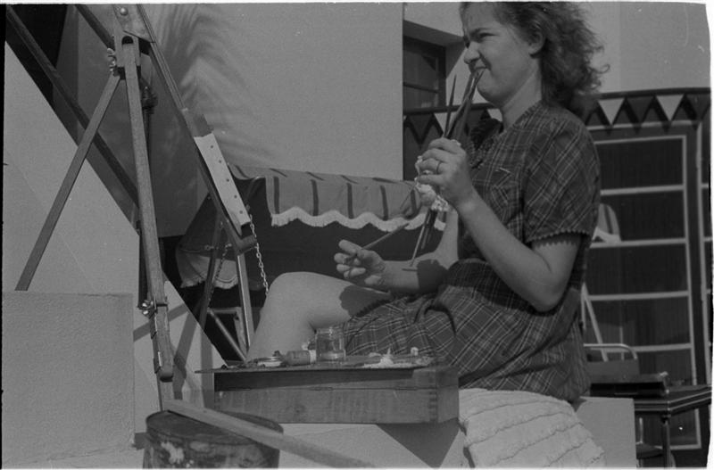 [Felicia Marsh painting outside and paintings by Reginald Marsh.]