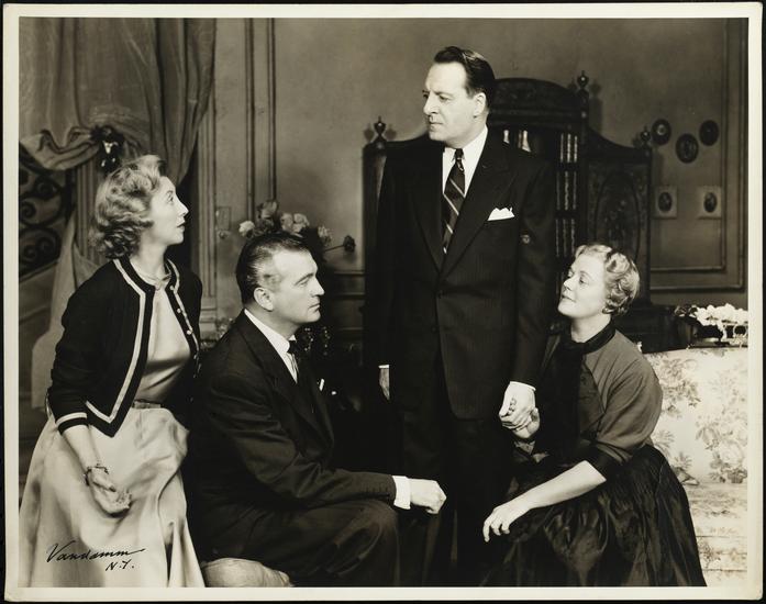 [William Whitman as Peter Crewe, Edna Best as Jane Fowler and Adrienne Corri as Ann Tower in "Jane".]