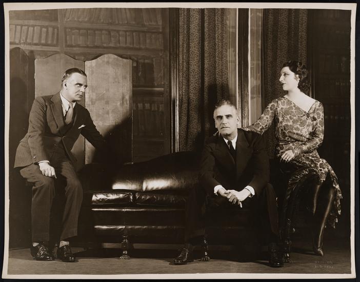[Harry Bannister as Edmund Darrell, Ralph Morgan as Charles Marsden and Pauline Lord as Nina Leeds in the touring production of "Strange Interlude".]