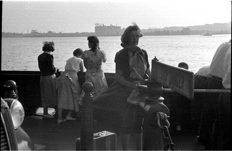 [Felicia Marsh and other passengers on ferryboat.]