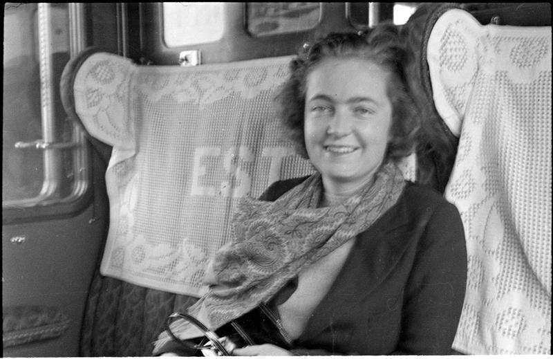 [Felicia Marsh waiting with unidentified man and woman at train station.]