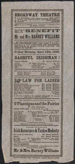 Mr. & Mrs. Barney Williams in "The Shamrock: The Flower of Erin", this evening, during the week and Saturday matinee