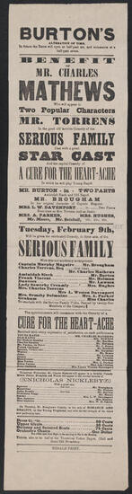 Wednesday, January 27, 1858, first night of the celebrated comedy in five acts, of "Old Heads and Young Hearts"