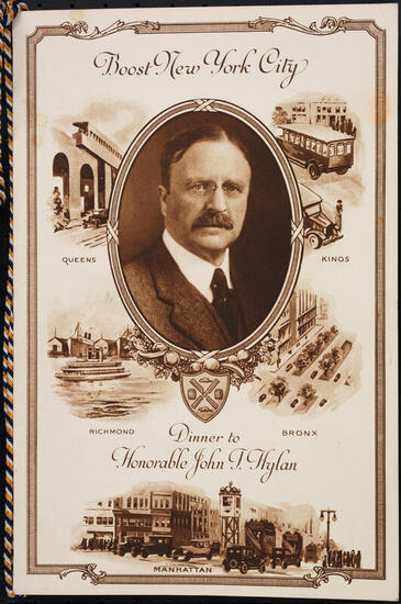 "Boost New York City". Dinner tendered to Honorable John F. Hylan, Mayor of New York City