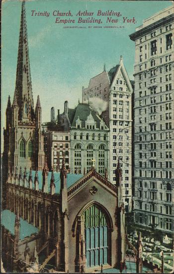 Trinity Church, Arthur Building, and Empire Building, New York.