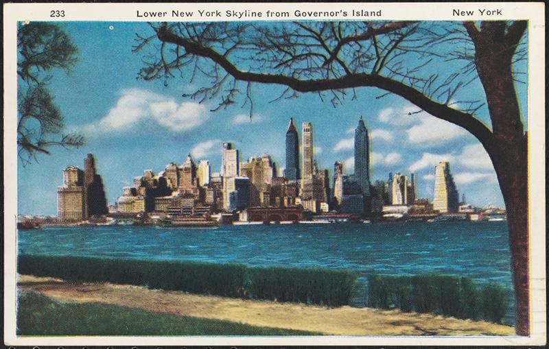 [View of Lower Manhattan and Governors Island from New York Harbor.]