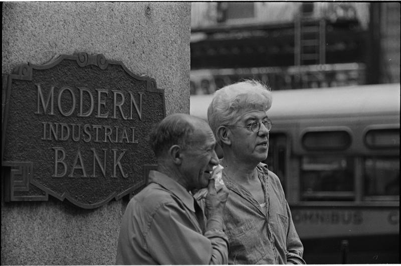 Street Conversations [Two men talking outside a bank.]