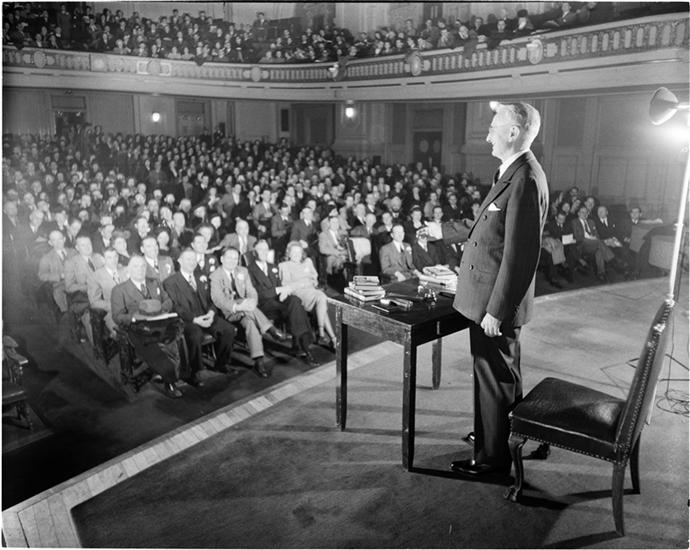 Dale Carnegie [Dale Carnegie teaching a public speaking class.]
