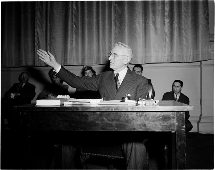 Dale Carnegie [Dale Carnegie teaching a public speaking class.]