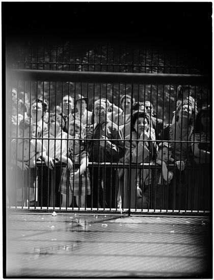 How People Look to Monkeys [Crowd looking at monkeys in a cage.]