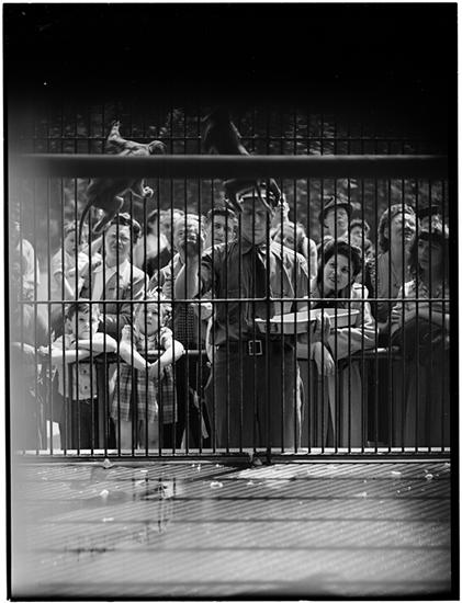 How People Look to Monkeys [Zoo employee feeding monkeys.]