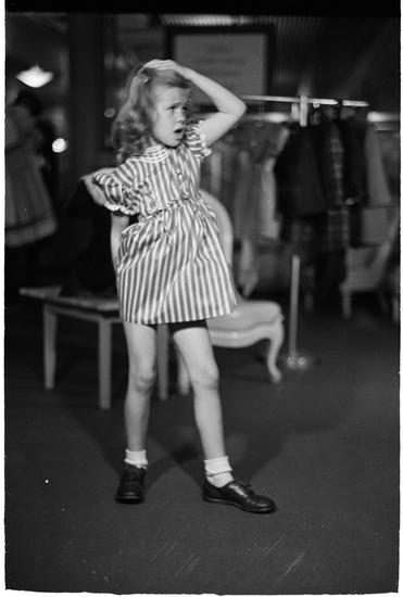 Clothes of Schoolchildren [Girl trying on a dress in a clothing store.]