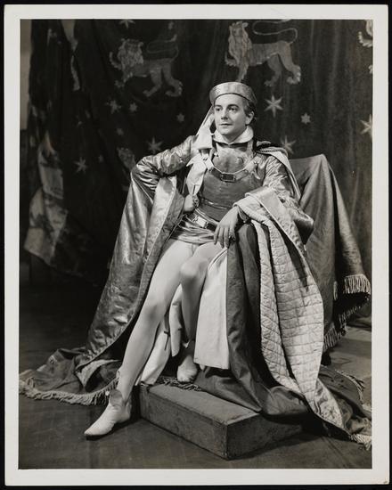[Maurice Evans as the title role and Frederic Worlock as Bolingbroke (Henry IV) in "King Richard II".]