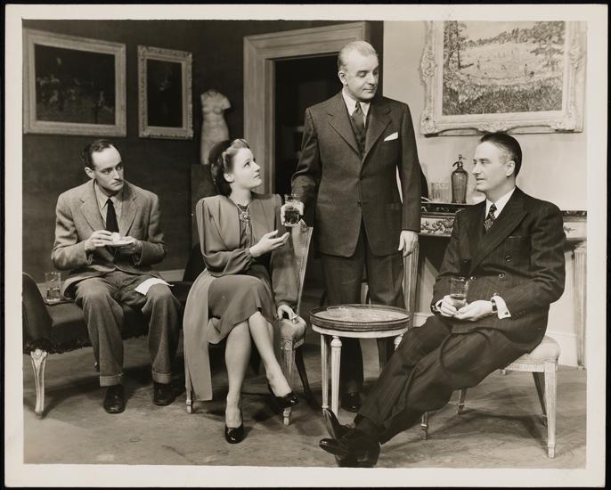 [Constance Cummings as Racine Gardner, James Rennie as Emory Jelliffe and Frank Conroy as Lucian Gardner in "One-Man Show".]