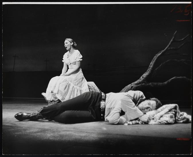 [Inga Swenson as Lizzie Curry and Stephen Douglass as File rehearsing for "110 in the Shade".]