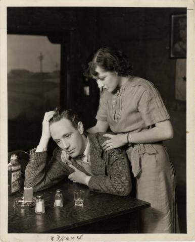 [Leslie Howard as Tom Collier and Lora Baxter as Cecelia Henry in "The Animal Kingdom".]
