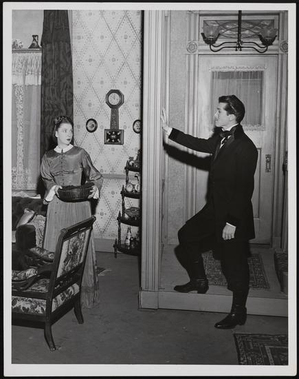 [Dorothy Gish as Mary Surratt and Kent Smith as Reverdy Johnson in "The Story of Mary Surratt".]