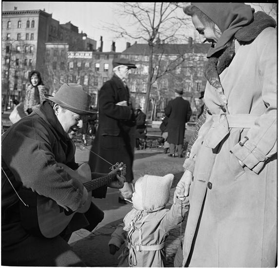 Burl Ives [Burl Ives performing in the street.]