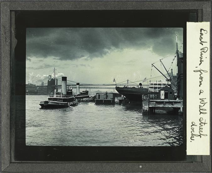 Barkentine Port Jackson, foot of Wall Street, East River. A rare sight in old N.Y. A sailing vessel from Australia.