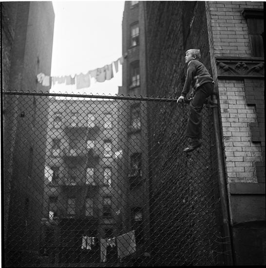 Shoe Shine Boy [Boy climbing a fence.]