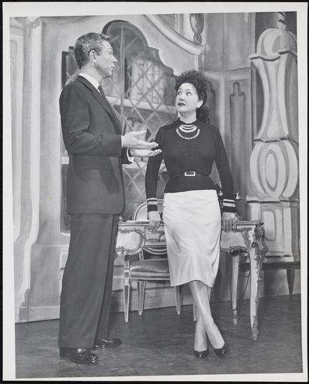 [Ethel Merman as Mrs. Sally Adams in "Call Me Madam".]