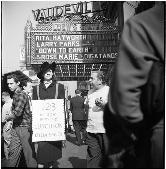 Advertising Sandwich Board [Woman wearing a sandwich board advertising the 1-2-3 cafe.]