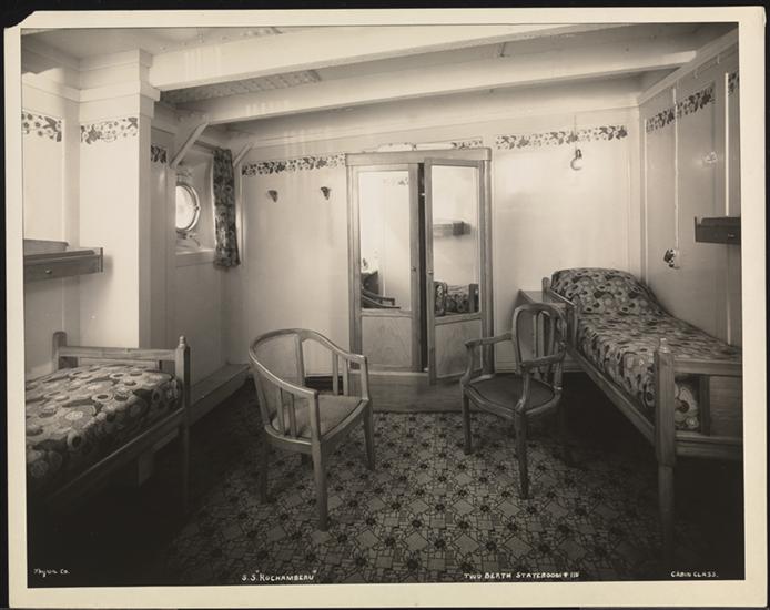 French Line, S.S. "Rochambeau", Cabin Class Interior, 3 Berth Stateroom #119.
