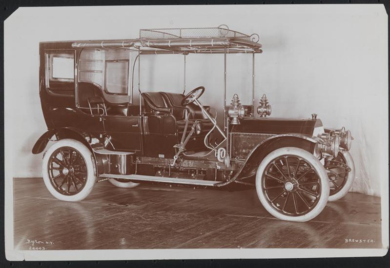 "Brewster" on neg. | "1907 Mercedes-Simplex: Brewster Body, 6 Cyl. 70 H.P., chain drive" pencilled on verso. | Signed "Byron N.Y." and numbered on neg.