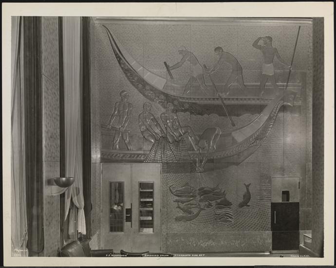 French Line, S.S. "Normandie", Cabin Cl., Panel in Smoking Salon, Starboard Side Forward.