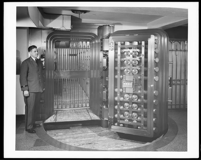 Central Hanover Bank and Trust Co., RCA Building, safe deposit vault and control room.