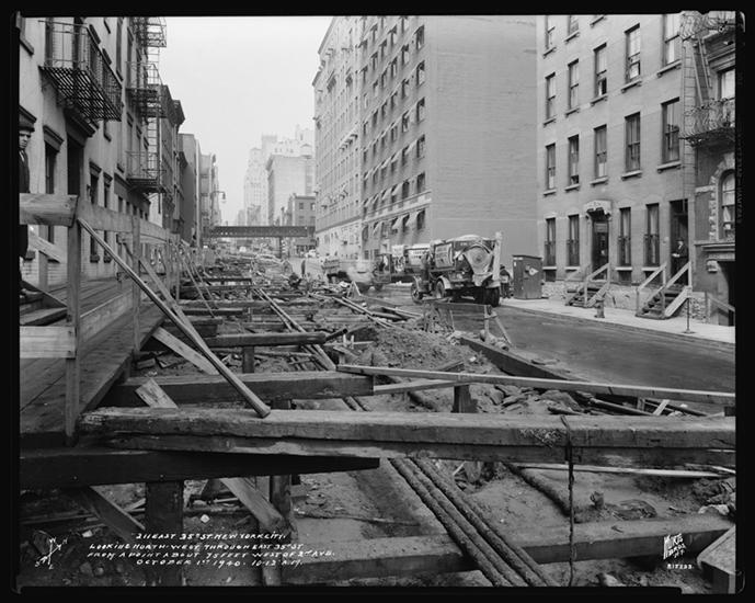 211 East 35th Street. View looking N.W. at 211 East 35th Street to show digging for street, legal record.