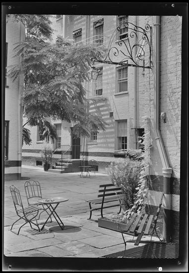 53rd Street and 1st Avenue. Sutton Manor Apartments, birds-eye from fire escape of corner of courtyard.
