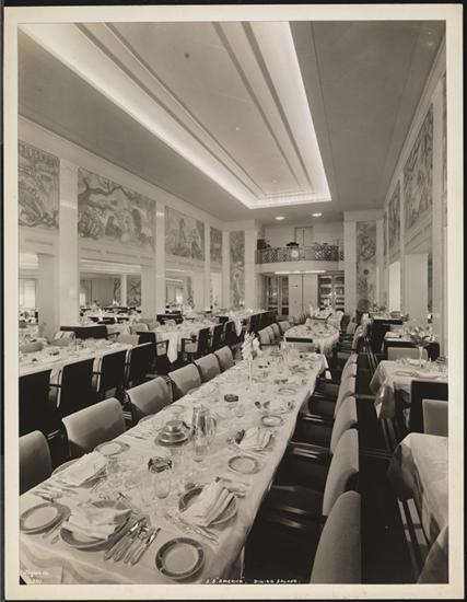 S.S. "America" at Newport News Shipyard, VA, Tourist Class, Interior, Dining Room.