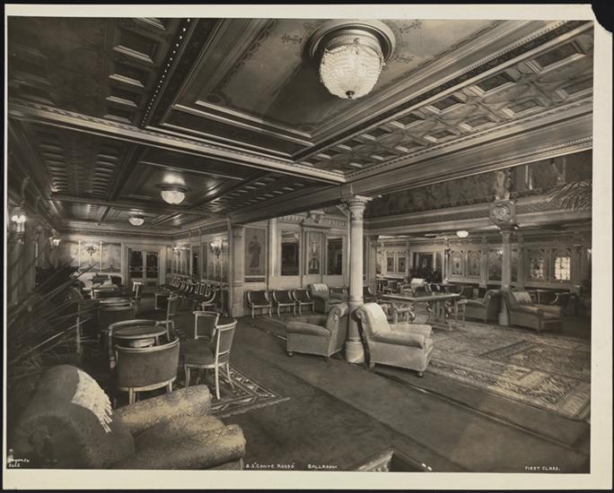 Lloyd Sabaudo Line, S.S. "Conte Rosso", Col Serrati, Interior, the Ballroom.
