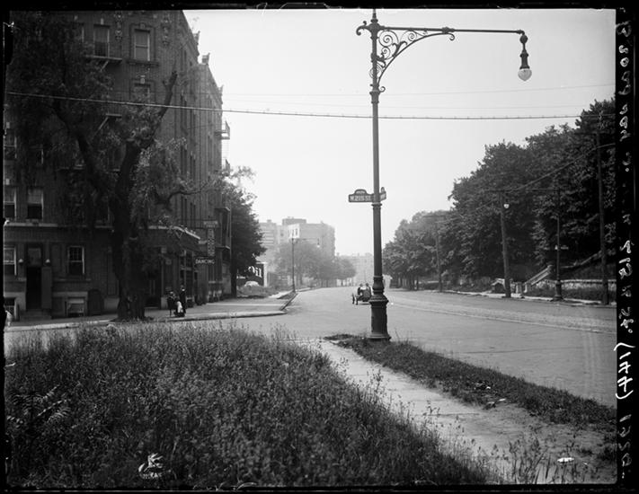 Broadway Series. Looking north from 84th Street. Bretton Hall at extreme right edge of picture. Bird and goldfish store at the left is on corner of 85th Street.
