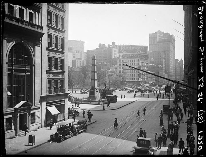 Broadway Series. View looking south from 18th Street taken from 3rd floor fire escape. 17th Street foreground, and Union Square in center.