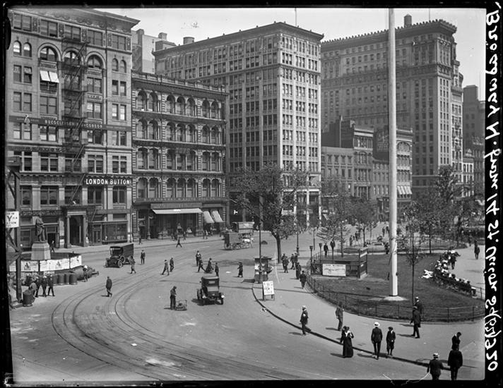 Broadway Series. View looking south from 18th Street taken from 3rd floor fire escape. 17th Street foreground, and Union Square in center.