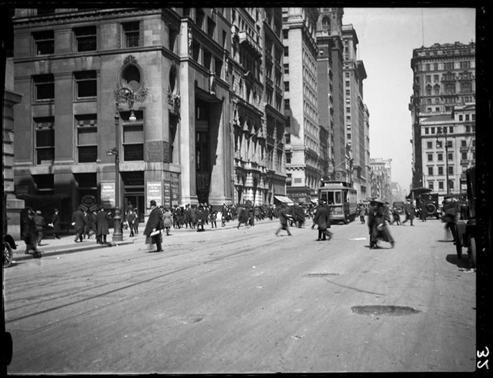 Broadway Series. Bway looking north from Exchange Place showing east side of street. Picture was taken from the second floor fire-escape of No. 53 Bway.