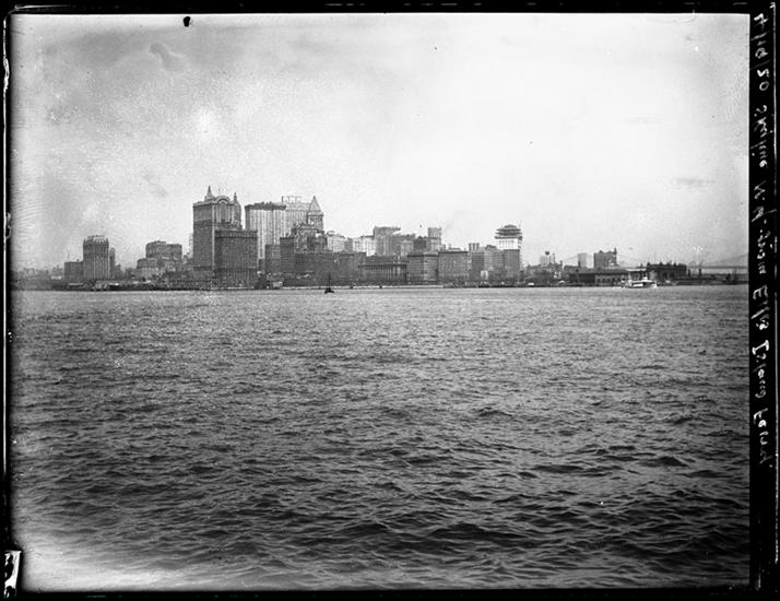 [Castle Clinton and Lower Manhattan skyline from the river.]