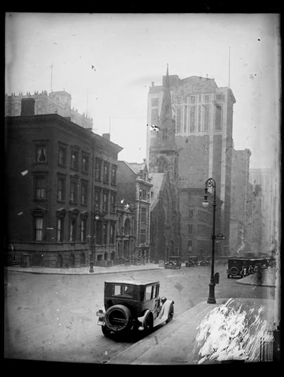 Madison Avenue. Looking north from 36th Street. West side of street as the city was widening the avenue. This block is opposite the J.P. Morgan home. Many prominent New Yorkers lived here in the early