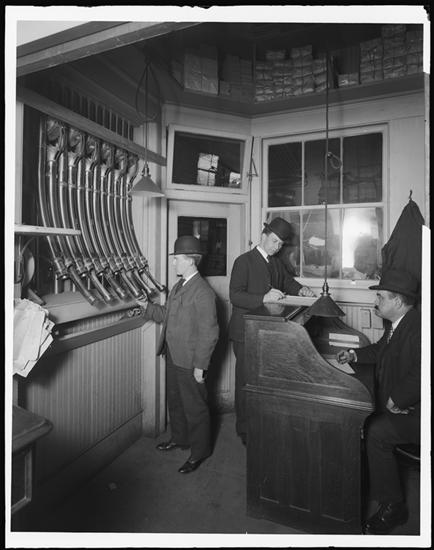 Franklin Street and Greenwich Street. B. Fischer and Co. Factory, testing coffee.