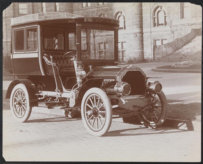 "1905 Pierce Great Arrow: Opera Coach, 4 Cyl. 28-32 H.P., body by J.M. Quimby & Co." pencilled on verso. | Signed "Byron N.Y." and numbered on neg.