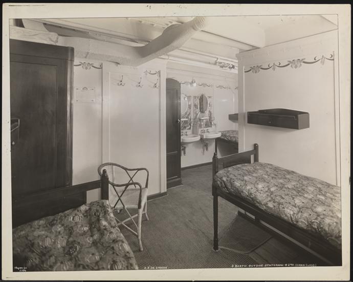French Line, S.S. "Paris" Pier 88 N.R., Third Class, Interior, Outside 3 Berth Cabin #867.
