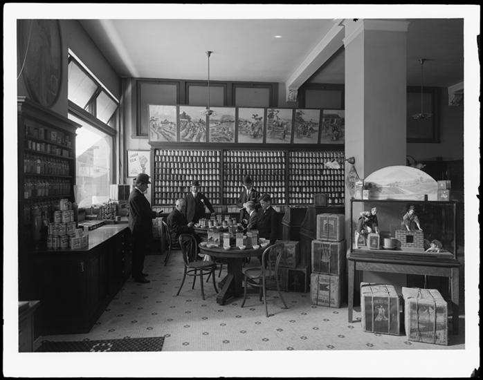 Franklin Street and Greenwich Street. B. Fischer and Co. Factory, testing coffee.